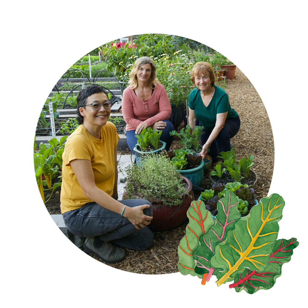 Left to right: Elayne Takemoto, Product & Marketing Manager, Lindsay Del Carlo, Trial Garden Manger, and Renee Shepherd, Founder