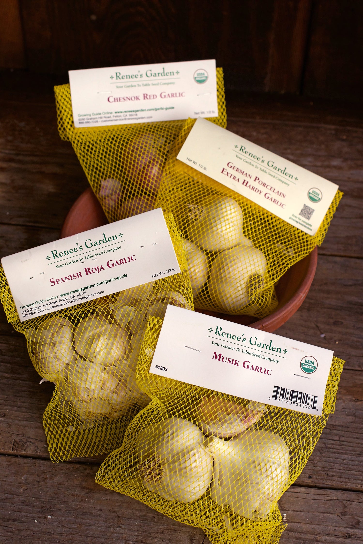 Our top-quality garlic stock comes from small, traditional growers in Oregon and Washington and sold in 1/2 lb. bags (3-6 full heads).
