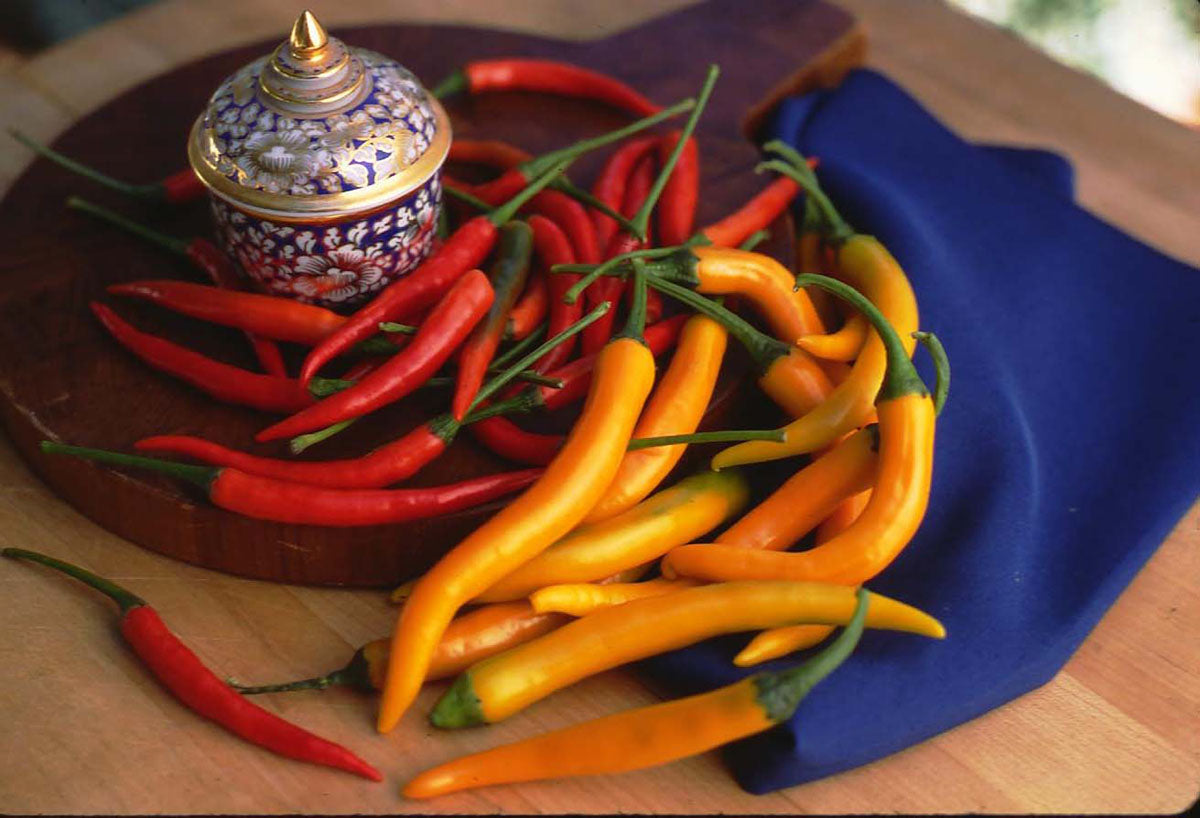 EXCLUSIVE - We import these brilliantly colored, authentic Thai chiles direct from the source! Vigorous Full Moon ripens bright orange with delicious medium hot/sweet pungency, perfect minced in sauces and salads. Red Vesuvius’ fiery little fruits point up like flames, with that nutty, incendiary pungency just right for stir-fries. Use fresh or air dry for tantalizing Asians style dishes.