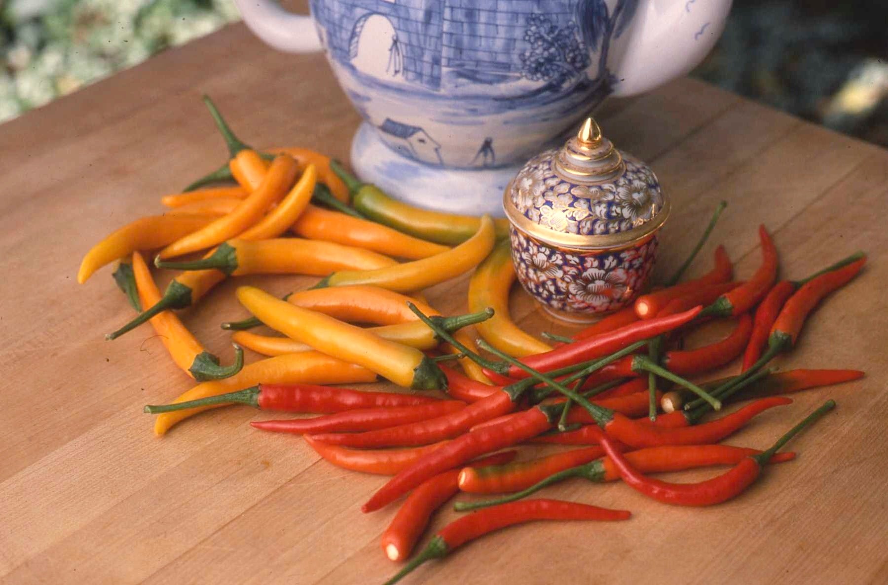 Chiles need warm conditions. Don’t transplant outdoors until night temperatures stay securely above 55°F (13°C). Prepare soil well with aged manure or compost. Plant only robust seedlings with well-developed roots. Mulch plants to maintain even soil moisture. Keep well weeded, watered and fertilized.