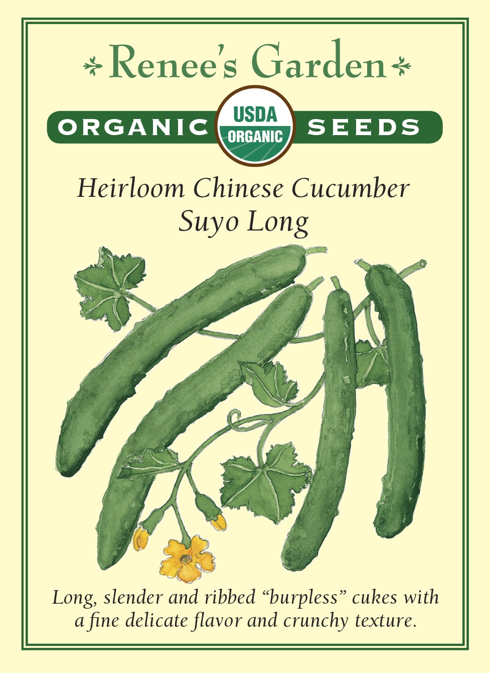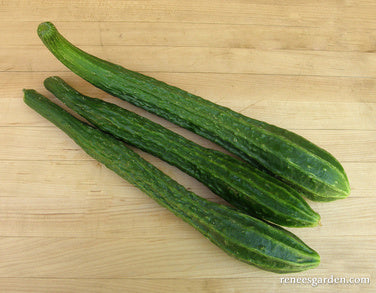 Asian heirloom cucumber producing lots of long, slender and ribbed, burpless deep green cukes with a fine delicate flavor and crispy texture that cucumber lovers will treasure. Monoecious.