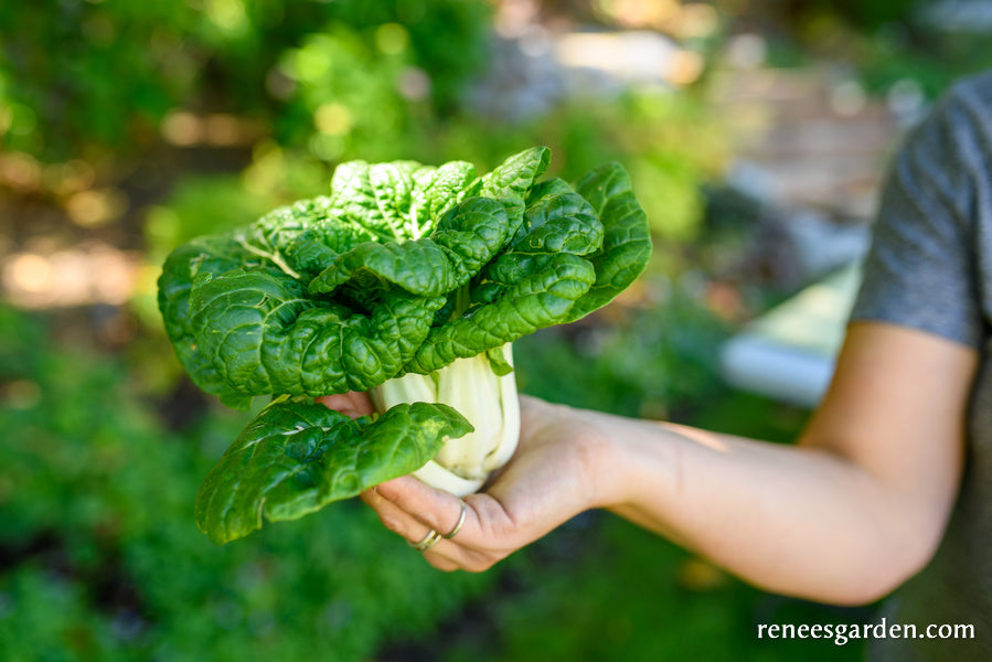 Harvest these plump minis when heads are solid and well filled out. Cut in half and sauté briefly, until just tender, then finish with a little soy sauce and toasted sesame oil. Or enjoy their mild sweet crunch in any stirfry, but don’t overcook. Mini Pak Choi is succulent, crunchy- sweet and mild tasting, and chock full of vitamins.