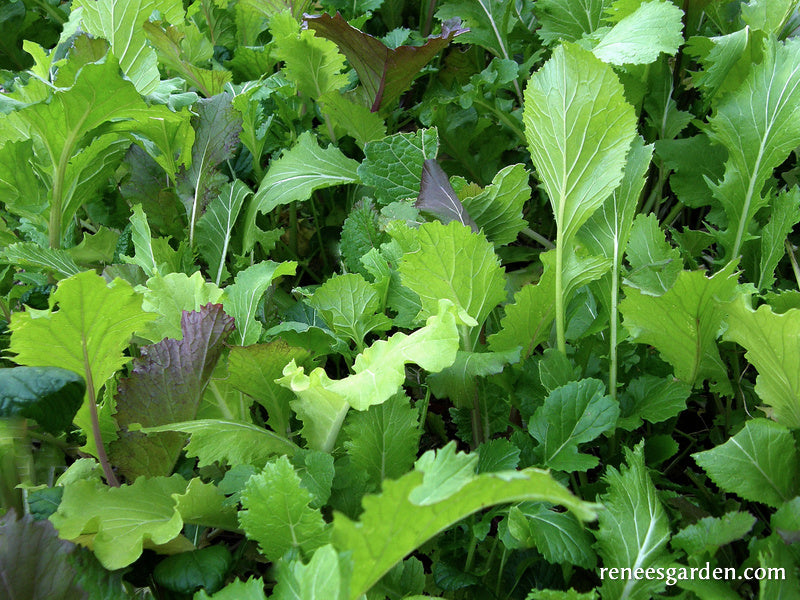 Our signature blend of the best tasting, quick- growing smooth and frilled leafy mustards. A perfect quick crop for continuous cool season zesty salads or nutritious and flavorful stir-fries.