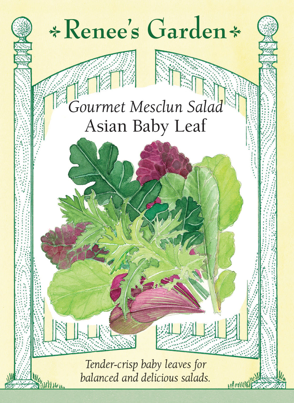 EXCLUSIVE – If you enjoy both crispy salads and Asian flavors, you will love this baby salad mix with a full array of colors, shapes and textures. Harvest effortlessly with scissors at just 4 to 6 inches tall for a delicious fresh salad blend that includes Komatsuna, Mizuna, Mustard (mild Green and Red), Rocket, Tatsoi and Chinese Cabbage. This mix of tender baby leaves makes a surprisingly mild and balanced salad bowl. Cut often for tasty fresh salads as pretty as a picture.