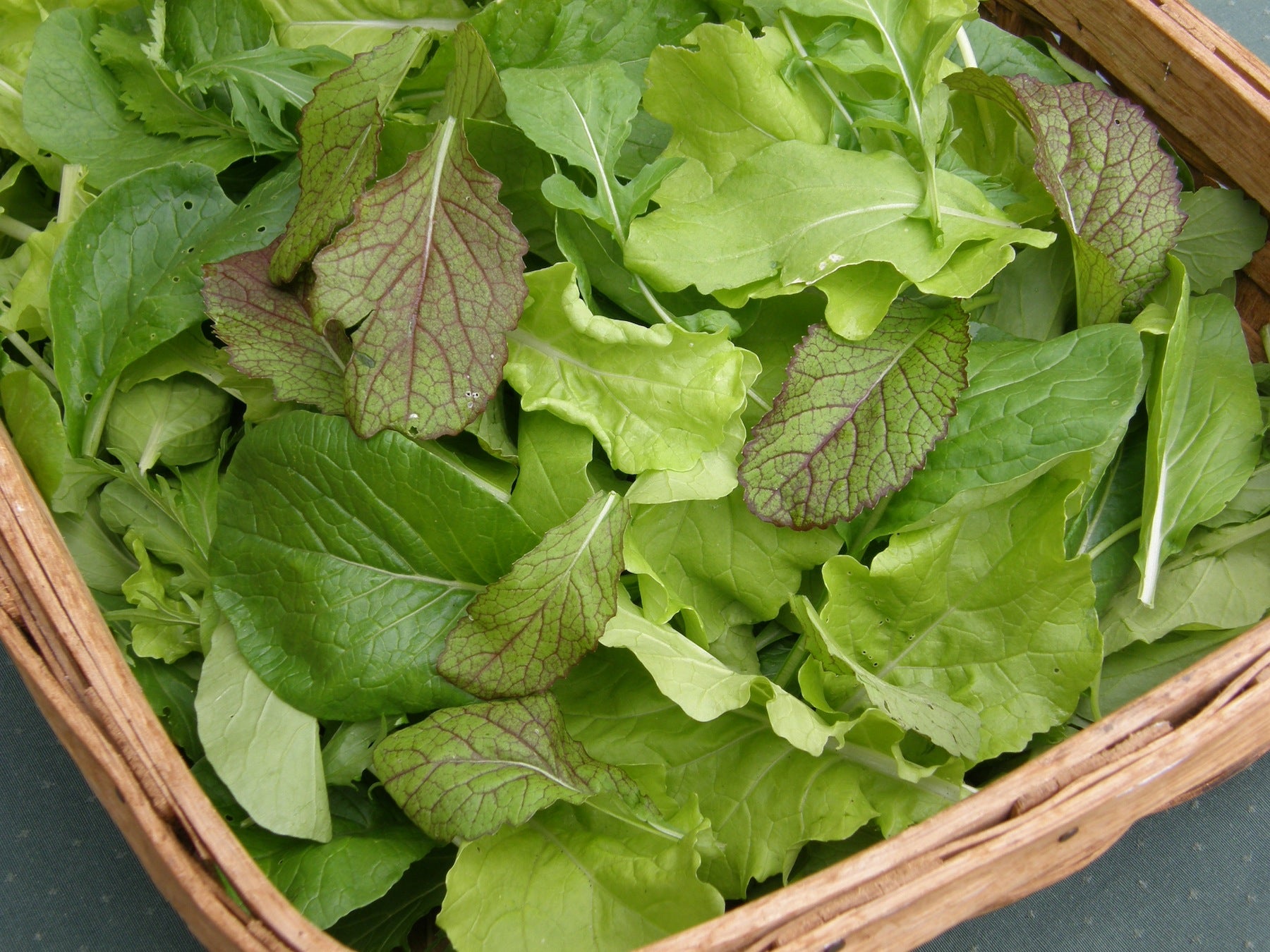 To harvest by the “cut and come again” method, wait until plants are 4 to 6 inches tall. Cut as much as you need, using scissors to shear off a patch of leaves about 1 to 2 inches above the soil level. Water well and fertilize lightly and plants will regrow for several more cuttings. Dress with a simple vinaigrette to enjoy the sweet flavor and juicy texture of these delicate young leaves at their best. For this Asian mix, try using rice vinegar and a touch of soy sauce and garlic in your vinaigrette.