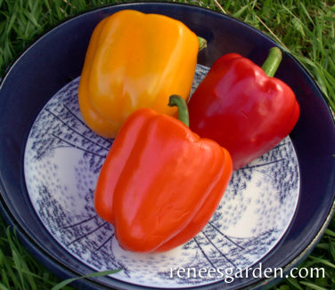 EXCLUSIVE – Our mixed seed packet offers you an easy way to grow three different colored sweet bell peppers. Vivaldi ripens up deep crimson-red, Tabby turns glossy golden yellow and Gourmet Orange matures glowing orange. These plump vigorous varieties combine mouth-watering rich flavor and juicy texture with high yields and excellent disease resistance.