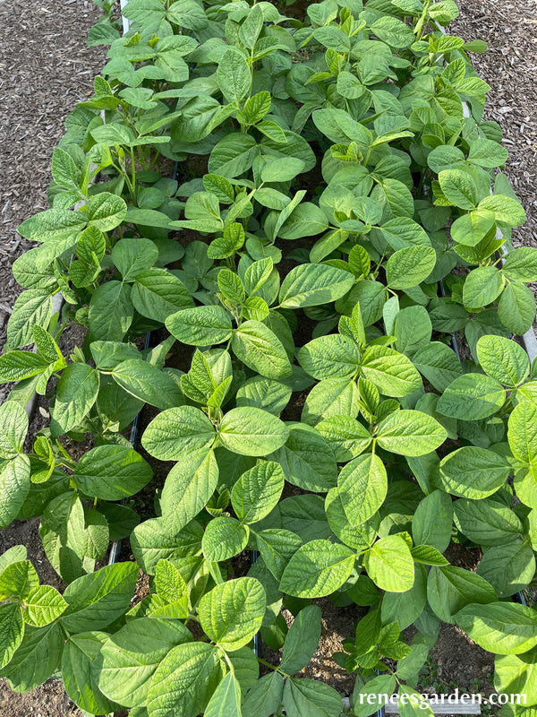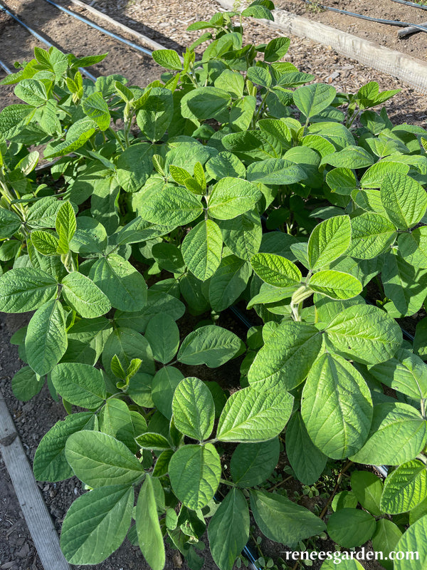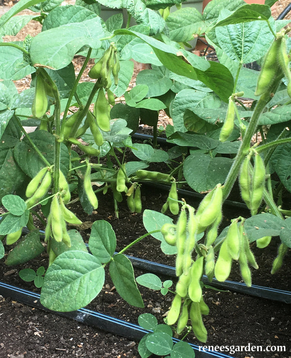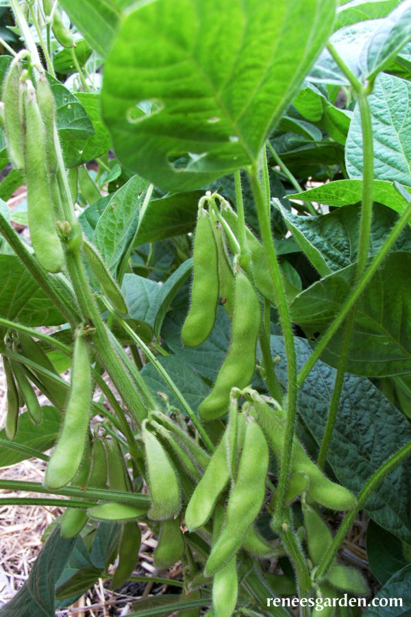 Edamame is easy, fun and reliable to grow, but wait until weather warms before planting; cold and/or wet conditions prevent good germination. If first sowing comes up unevenly, replant right away; new seedlings catch up quickly. Be sure to thin to final 6 inch spacing for best pod production. Birds are often attracted to young seedlings, so watch carefully and protect with netting or floating row cover if necessary. Avoid cultivating plants when wet.