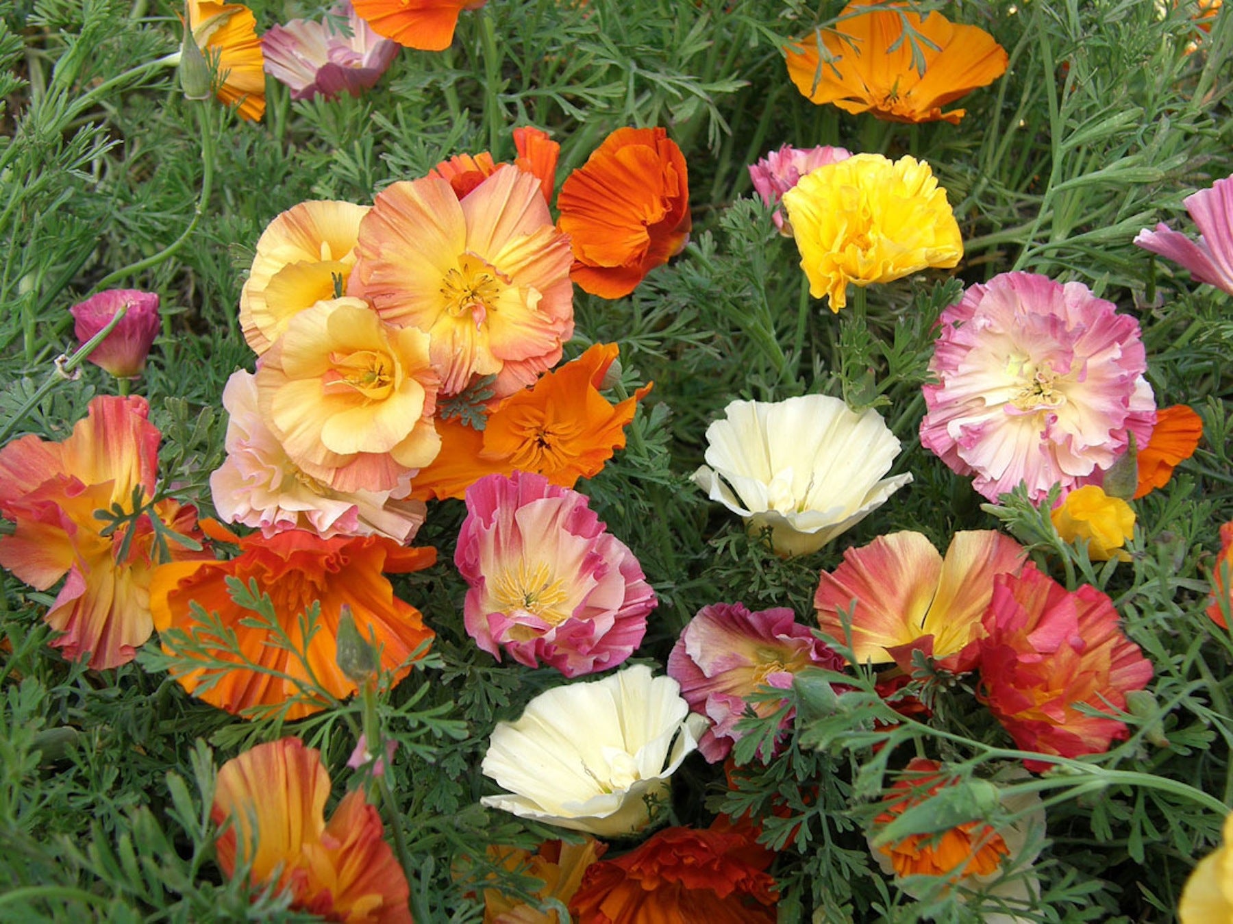 Enchanting Dancing Ballerina is a graceful mix of special California poppies that have unusual fully double and semidouble blossoms with delicate fluted petals. These paper-thin, glowing flowers bloom in a shimmering range of rich sherbet colors including deep rose, lilac, scarlet, orange, yellow and white. Like all California poppies, you’ll find carefree Dancing Ballerina is easy to grow and forgiving of poor soil. The abundant flowers shine on slender stems above feathery, gray-green foliage.