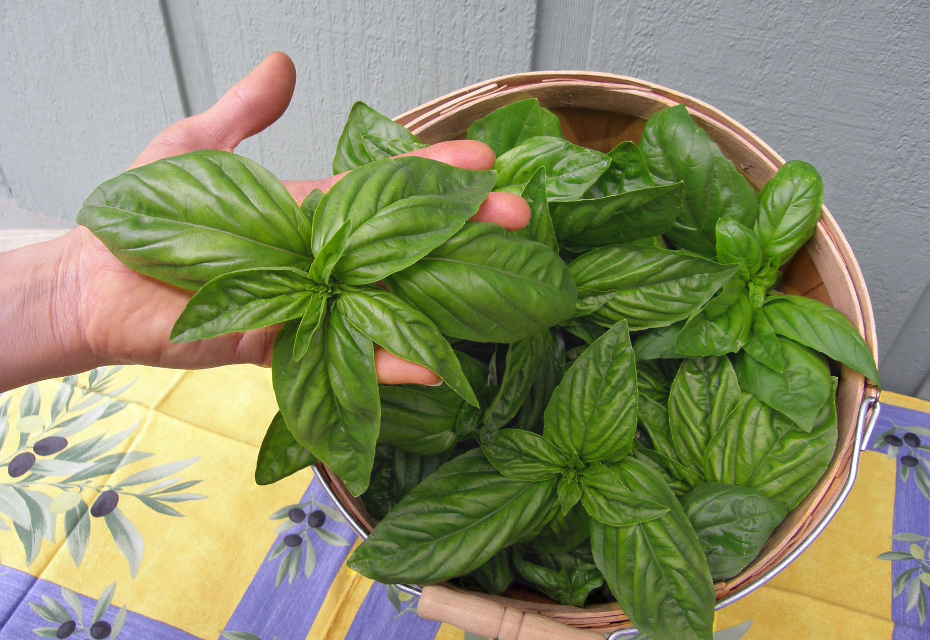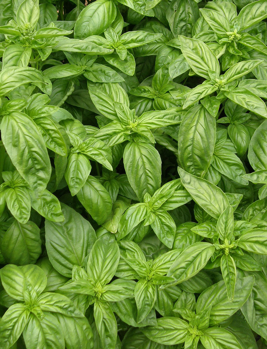 It is critical to sow seed or transplant basil seedlings only when late spring day and nighttime temperatures stay above 55°F (13°C). Harvest sprays of leaves by snipping stems just above two new sprouting lateral branches to encourage lush foliage. Keep flower buds pinched off to extend harvesting. Feed regularly with high nitrogen fertilizer after harvesting to promote new growth. Except in very short season areas, make a second planting three weeks after the first for a continued supply of fresh, aromatic leaves.