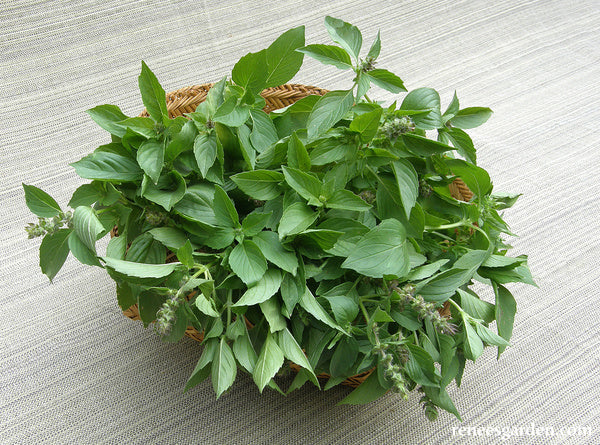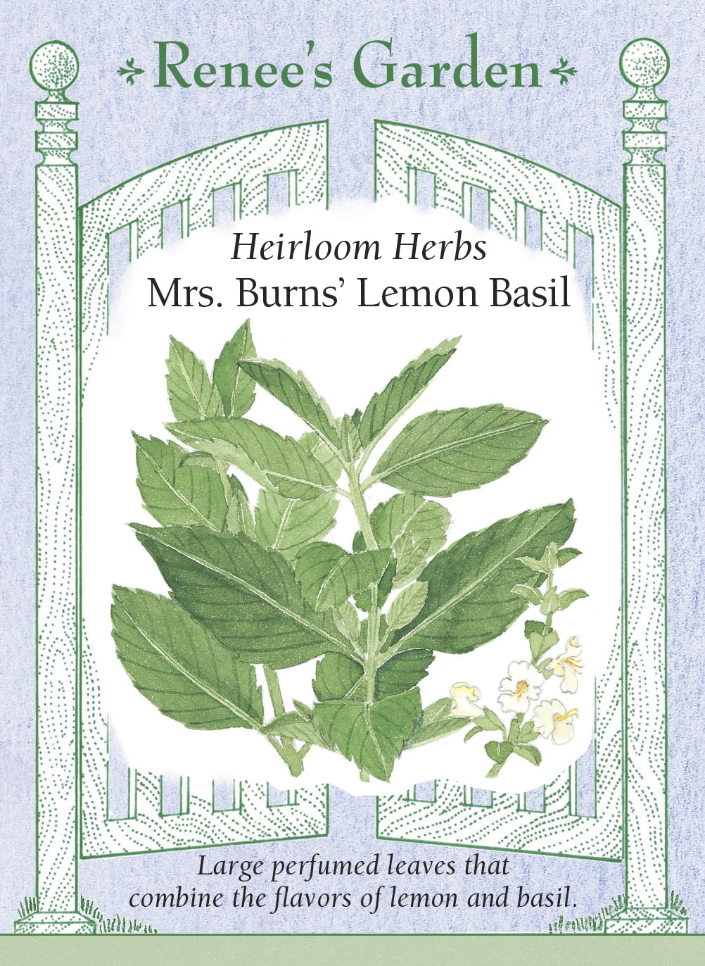 This delightful heirloom, saved for generations for its scrumptious taste and fragrance, has a robust, carefree nature in the garden and bigger leaves than any other lemon basil variety. Chop or crush the foliage and release the heady perfume of basil commingled with a warm delicious lemon accent. Add Mrs. Burns lavishly to rice dishes, poultry, fish, potatoes and vegetables, use it in dressings and marinades or enjoy its abundant leaves for refreshing lemony iced tea.
