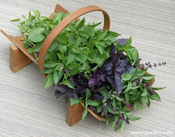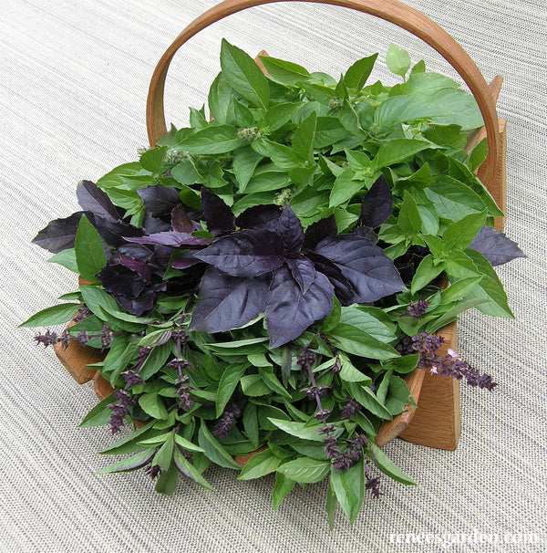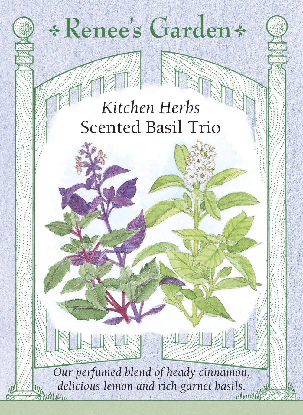 EXCLUSIVE – We’ve blended this mix of our favorite perfumed basils to grow together for heavenly scented ornamentals in the flower or herb garden and delicious herbal accents in the kitchen. Cinnamon basil’s heady perfume and shiny purple-veined leaves and Red Rubin’s rich garnet colored leaves and rosy flowers combine with heirloom Mrs. Burns‚ intense citrus basil scent to make up a marvelous trio.Their colors, forms and exotic fragrances will delight all your senses this season.