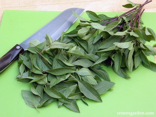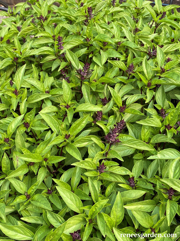 Remember, for success with this easy to grow but cold-sensitive herb, it is essential to sow and/or transplant basil only when weather is warm and nighttime temperatures stay above 50°F (10°C). Harvest sprays of leaves by snipping stems just above two new sprouting lateral branches to encourage lush foliage. Keep flower buds pinched off if you want to extend harvesting. Feed regularly to promote new growth.
