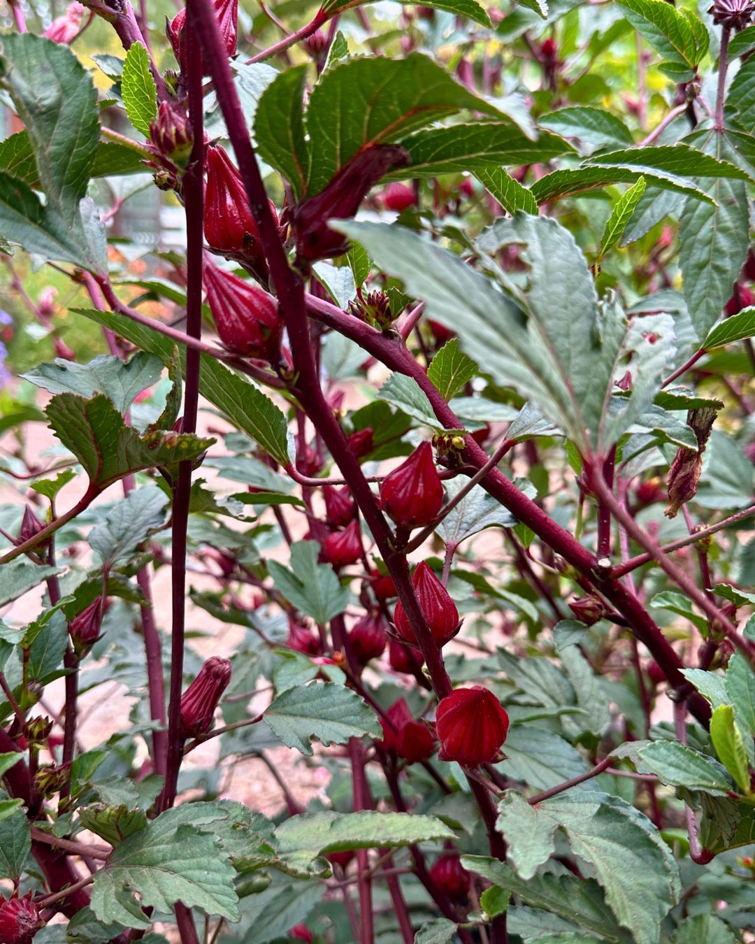 After flowers have finished blooming, harvest the deep-red, teardrop-shaped, calyxes at the base of each blossom. Snap off calyxes that are ready, removing spent flower if still attached Use fresh, or air-dry for longer storage.
