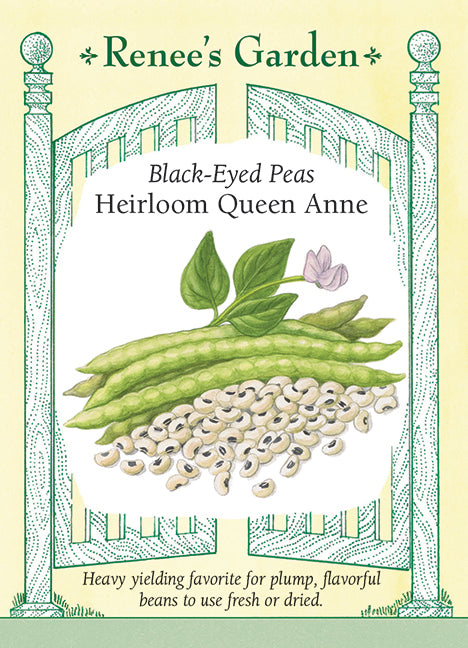 Whether you call them black-eyed peas, cowpeas, Southern peas, field peas, or crowder peas, this easy to grow, heat loving, nutritious legume is a kitchen staple. Harvest either as fresh, plump beans, or wait until mature and dried in the pods. Queen Anne has shorter 2 ½ foot vines and heavy yields. These mild, tasty beans are traditionally paired with fluffy hot rice for a complete meal – or cook up scrumptious stews and high-protein salads. Quick cooking, versatile, and nutritious with a creamy texture.