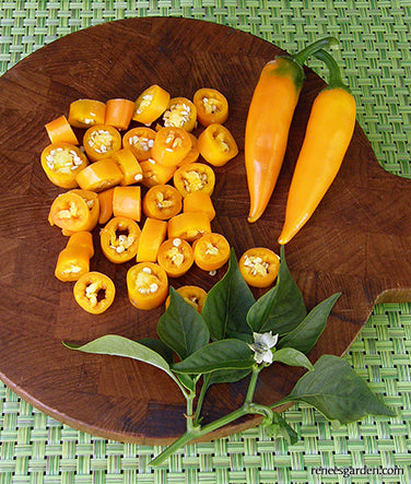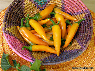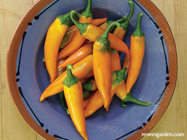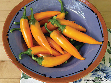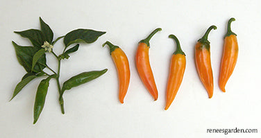 Harvest when chiles have colored up to deep orange with a high gloss. Use these hot and fruity flavored little chiles for delicious salsas, hot sauces, spicy pickled peppers or in any recipe using hot chiles. Carrot chiles have thick flesh and do not dry well, so freeze in heavy Ziploc bags if preserving for future use.