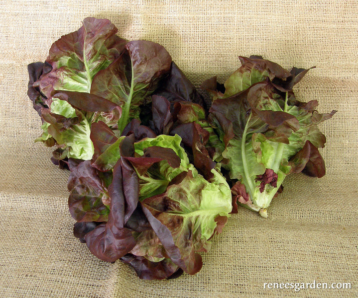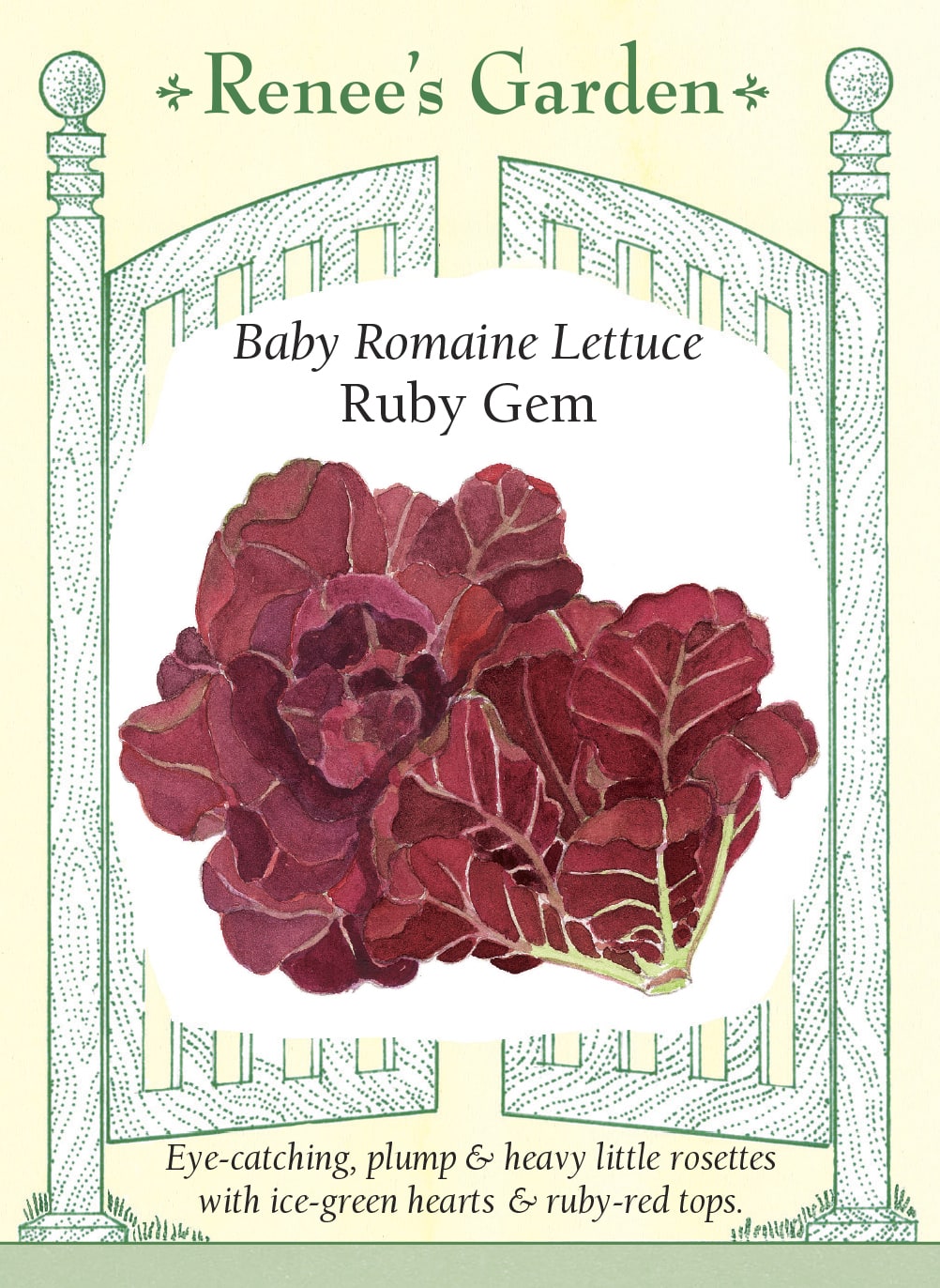 EXCLUSIVE - Eye-catching Ruby Gem offers plump, heavy rosettes about 6 inches tall. The vigorous seedlings grow rapidly into perfectly formed, well filled out, beautiful little heads with tightly folded, ice green hearts and ruby red tops. Leaves have crisp, juicy texture and marvelous flavor. Slice a pretty head of Ruby Gem in half to plate up a great salad for 2 people – just pour over the dressing! This superb variety was developed for gourmet markets by our favorite specialty lettuce grower.