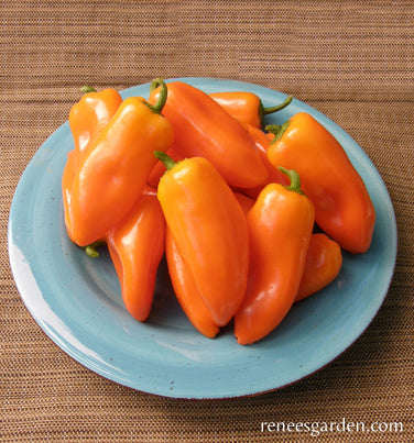 Highly productive plants load up early with thick-walled, plump and juicy 3 to 4 inch mini peppers that ripen quickly to bright orange. Sweet and delicious for fast snacks and salads or grilling.