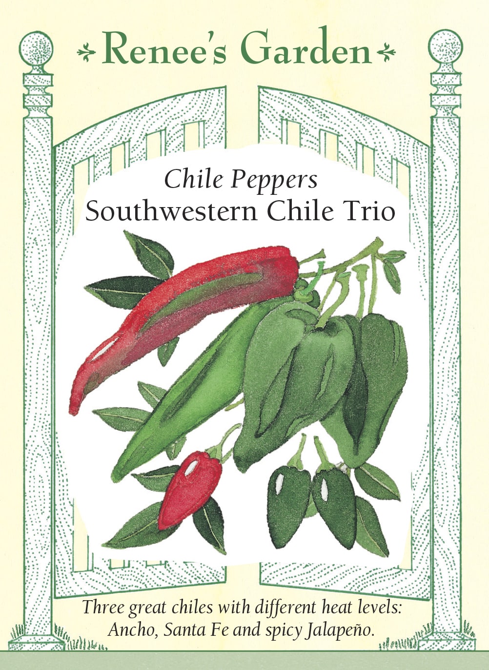 EXCLUSIVE – Our mixed packet offers a trio of the best chile flavors with three different heat levels. You’ll have dark green, heart-shaped Ancho ‘Sanchez’ poblano with a mild aromatic flavor perfect for chile rellenos; shiny, thick-fleshed ‘Joe Parker,’ an authentic Santa Fe style medium-heat chile wonderful to grill; and spicy Jalapeño ‘Bubba’ whose hot pungency is just right in salsas, bean dishes and ‘chile poppers.’