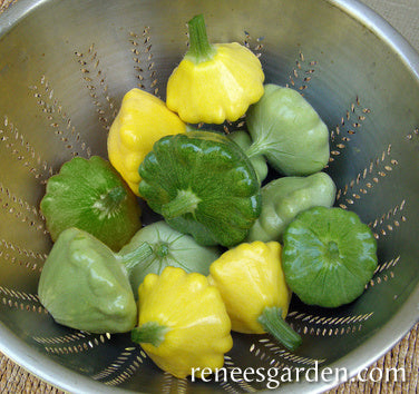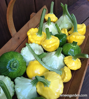 EXCLUSIVE - Our mixed seed packet offers an easy way to grow a delicious trio of different colored pattypan squashes. Buttercup-yellow fluted “Sunburst” is tender and nutty tasting simply steamed or poached in broth. Dark green, glossy little “Starship” has zucchini color and flavor in a unique flying saucer shape. Pretty apple-green “Peter Pan” scallops are creamy and sweet fleshed – a treat to sauté or slice and grill.