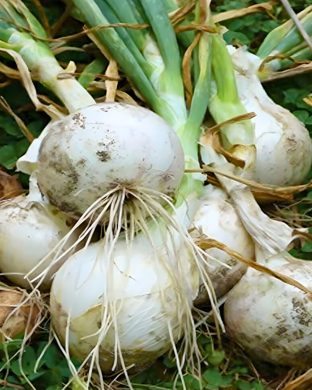 Super Star yields big harvests of big shiny white mild tasting bulbs sweet enough to eat raw in sandwiches and salads. After harvest, these beautiful, creamy white, crispy onions store very well for long-term enjoyment. If planted early in spring, individual onions can reach 1 pound or more!