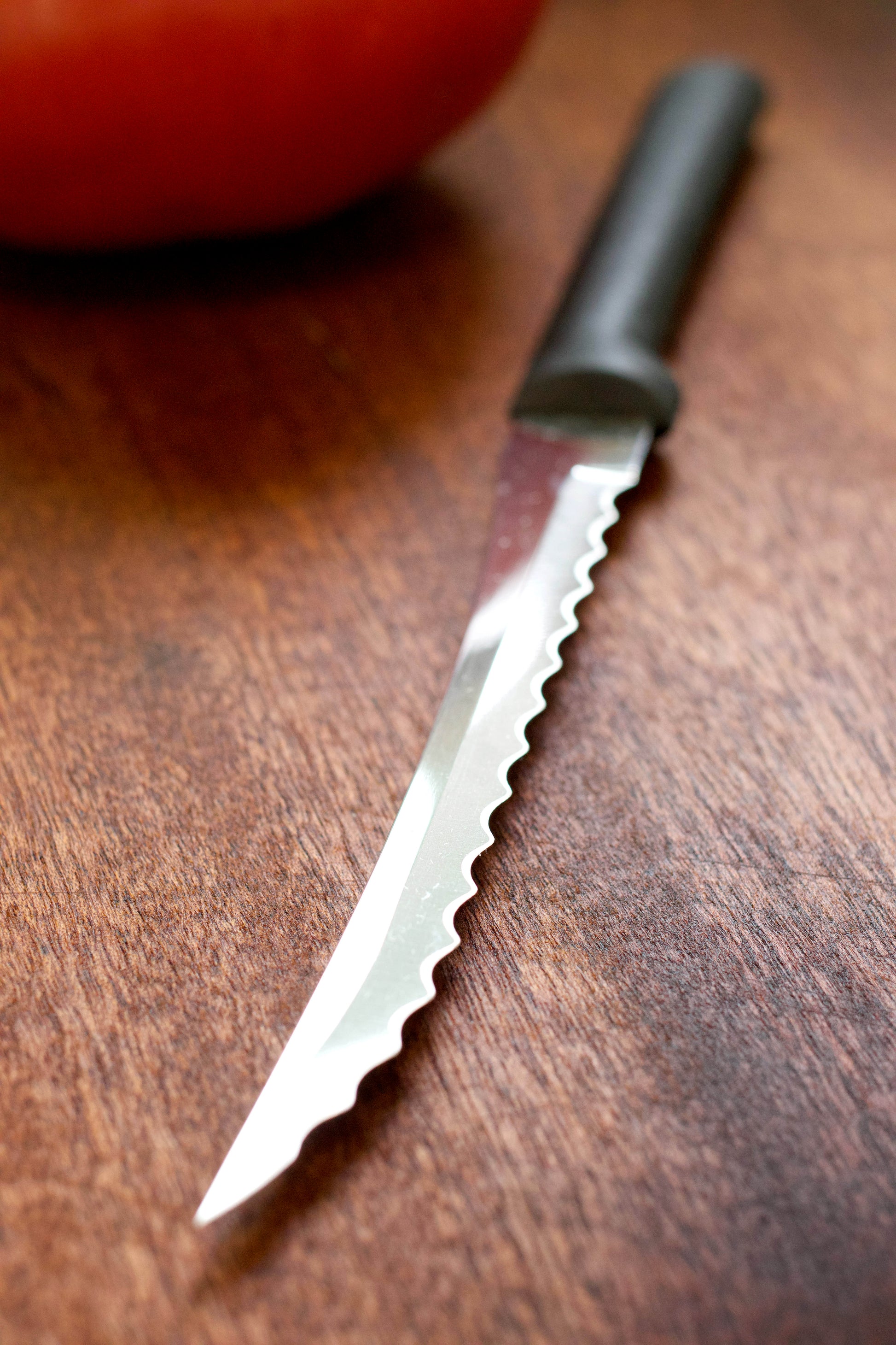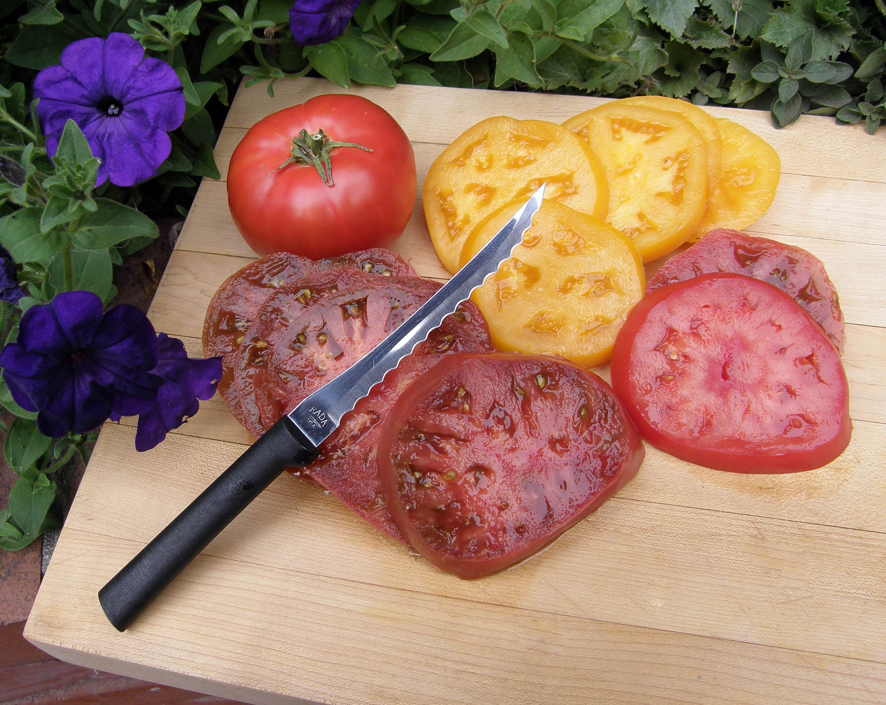 This unique knife is the best for effortlessly slicing ripe tomatoes without squashing their juicy flesh. The handy little ever sharp kitchen tool has a comfortable, molded handle and a perfectly angled, serrated blade that is ideal for cleanly and quickly cutting up juicy fruits and thin-skinned vegetables and every kind of precise slicing task in the kitchen.