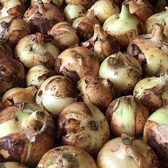 This is the really sweet variety grown in both Vidalia, Georgia and Maui, Hawaii, then marketed by those place names as Vidalia or Maui onions. These semi-flattened, big, fat, crispy hybrid onions are so mild that you can eat them out of hand. Juicy slices are really scrumptious on burgers.