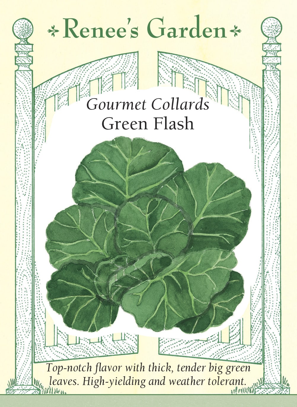 Easy to grow Green Flash forms dense, 18 inch tall rosettes of thick, tender, big paddle-shaped leaves. This top-notch variety offers uniformity, vigor, high yields and bolt resistance for rapid regrowth and longer, more dependable harvests. Cut the handsome leaves often to enjoy their flavorful, sweet taste as succulent cooked greens. Mild, nutty-tasting collards are one of the most fiber and vitamin-rich vegetables you can grow in your home garden.