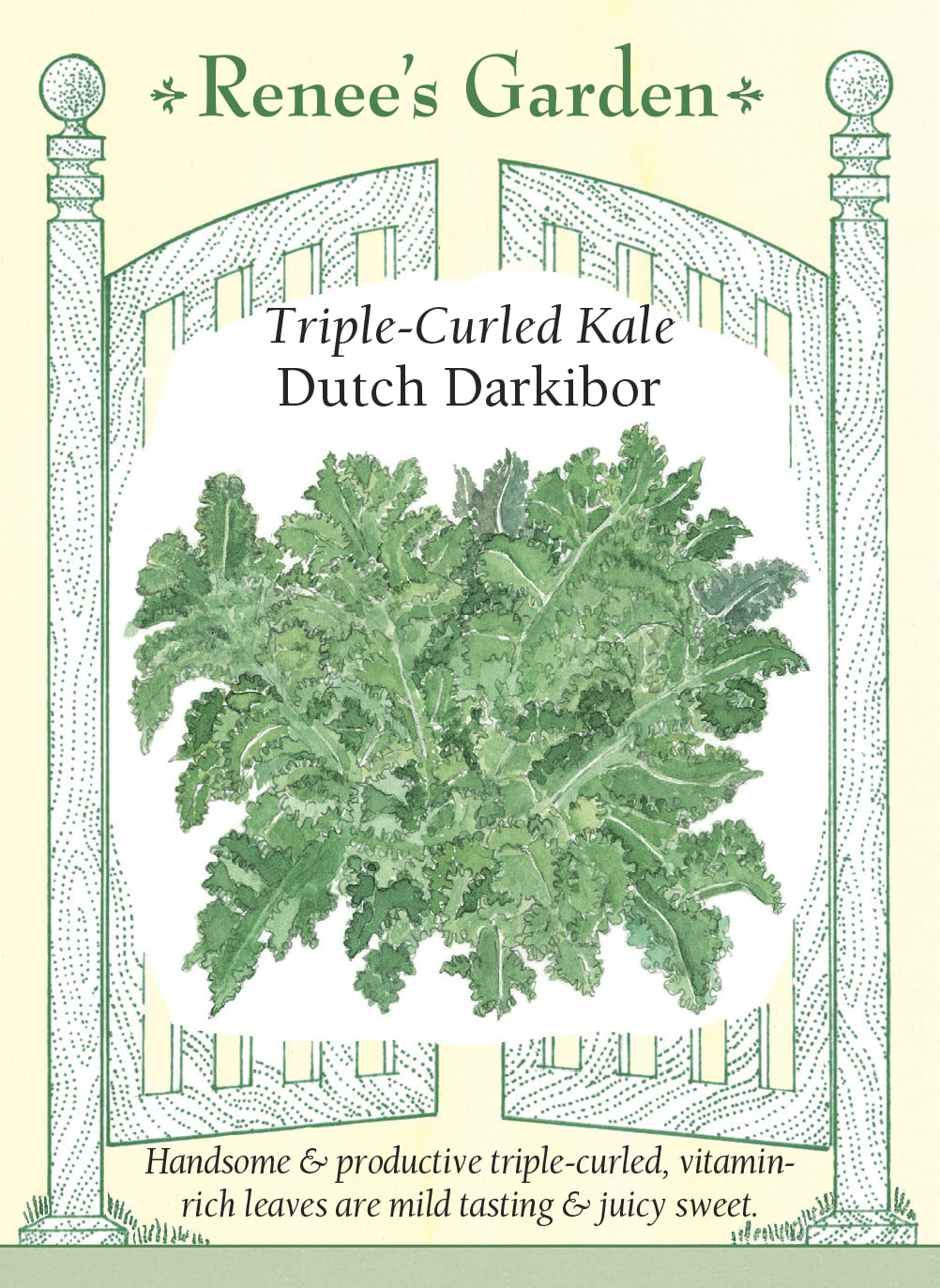 The triple curled, rich green leaves of this top-quality Dutch variety are mild, juicy-sweet and tender: a perfect choice for vitamin-rich, garden fresh kale salads, kale “chips” and a whole range of traditional cooked dishes. Darkibor grows effortlessly into 18 inch tall, dense leafy rosettes of frilled rich green leaves. This striking edible landscaping plant is at home in both vegetable and ornamental gardens. You’ll be enjoying this great tasting, weather tolerant variety for months.