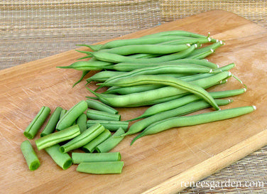Tender crispy garden beans are an easy and reliable crop to grow, but don't plant seeds too early as cold conditions prevent good germination. If first sowing comes up unevenly, replant right away; new seedlings will catch up quickly. Birds are often attracted to young bean seedlings, so watch carefully and protect with netting or floating row covers if necessary. Avoid cultivating plants or picking pods when plants are wet.