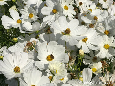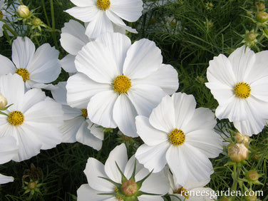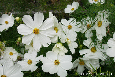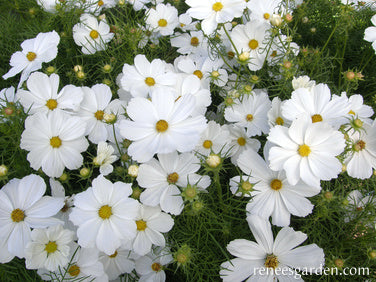 EXCLUSIVE - These easy-care plants grow just under 2 feet tall with branching, many budded stems above a cloud of feathery, fine-cut foliage. Their satiny textured, 2 to 3 inch, daisy-shaped blossoms have perfect snow white petals and sunny gold centers. These fast growing, joyous flowers bloom non-stop, providing graceful sprays of silky white flowers for country-style bouquets. The dancing blossoms fill garden beds and patio pots to beckon butterflies all summer long.