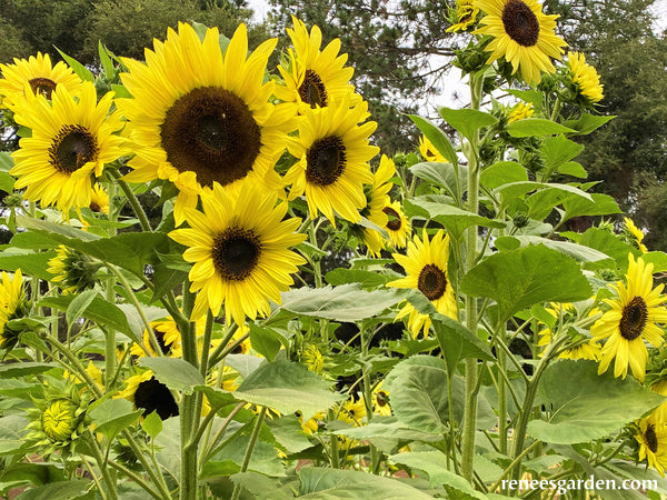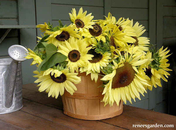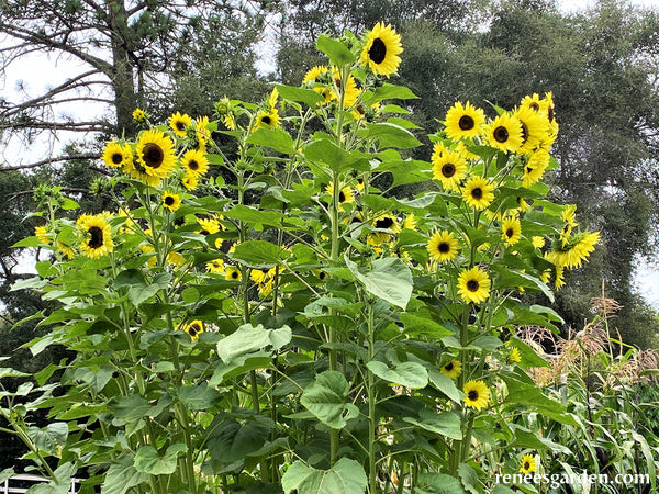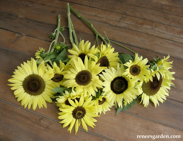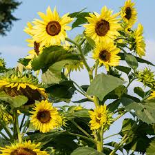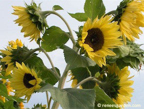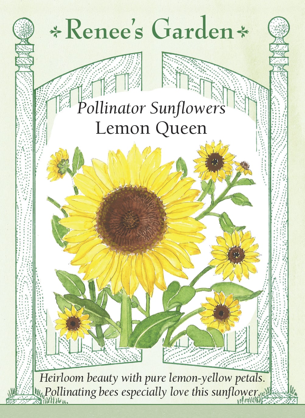 Heirloom Lemon Queen is particularly attractive to pollinating bees and is often planted by researchers tracking honeybee populations. These free flowering sunflowers have branching clusters of 4-6 inch flowers with pure lemon-yellow pointed petals and chocolate centers. Plants grow 5-9 feet tall and mature early.