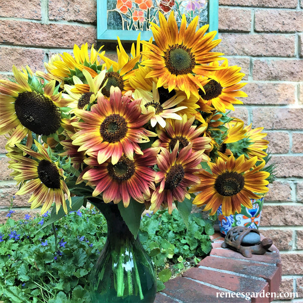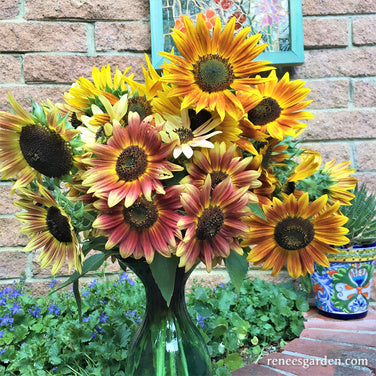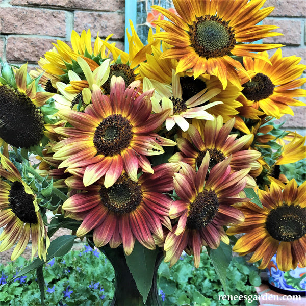 EXCLUSIVE – Vigorous, branching sunflowers with big clusters of dancing blossoms in glorious colors & bi-colors. Nectar for bees, armfuls of blooms for bouquets & seed heads to satisfy songbirds.