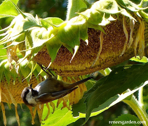As flowers bloom, bees pollinate the florets in each head and the seeds begin to mature. When the center disk florets have dried up, birds of all sorts will visit to snack on the ripening seed heads.