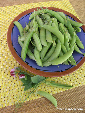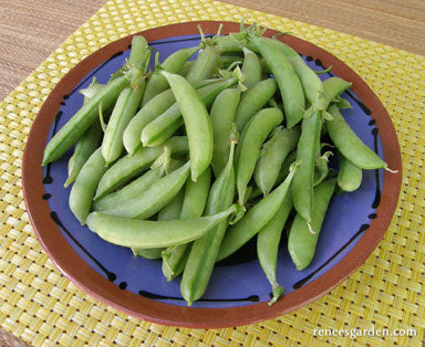 Harvest only when peas are mature and round in the thick walled, juicy pods for the best developed flavor. Savor their sweet crunch fresh from the garden (kids especially love them!) as a snack or slice into salads. Pick pods regularly and you’ll have longer production of new ones. To cook quickly, pull strings from pods and sauté in a little oil just until pods turn a deeper green color.