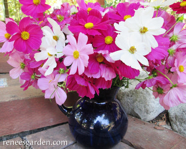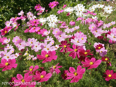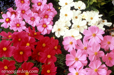 Sonata Cosmos’ compact feathery 2 1/2 to 3 foot plants are soon covered with sprays of buds that open and bloom non-stop all summer long. The blossoms’ 2 inch satiny petals in shades of magenta, clear white, soft pastel pink and pure rose surround cheerful yellow centers. Reliable and long lasting, with stems long enough for cutting lots of bouquets, free blooming Sonatas are perfect for containers, beds or borders. Butterflies and other pollinators love to visit these lovely flowers.