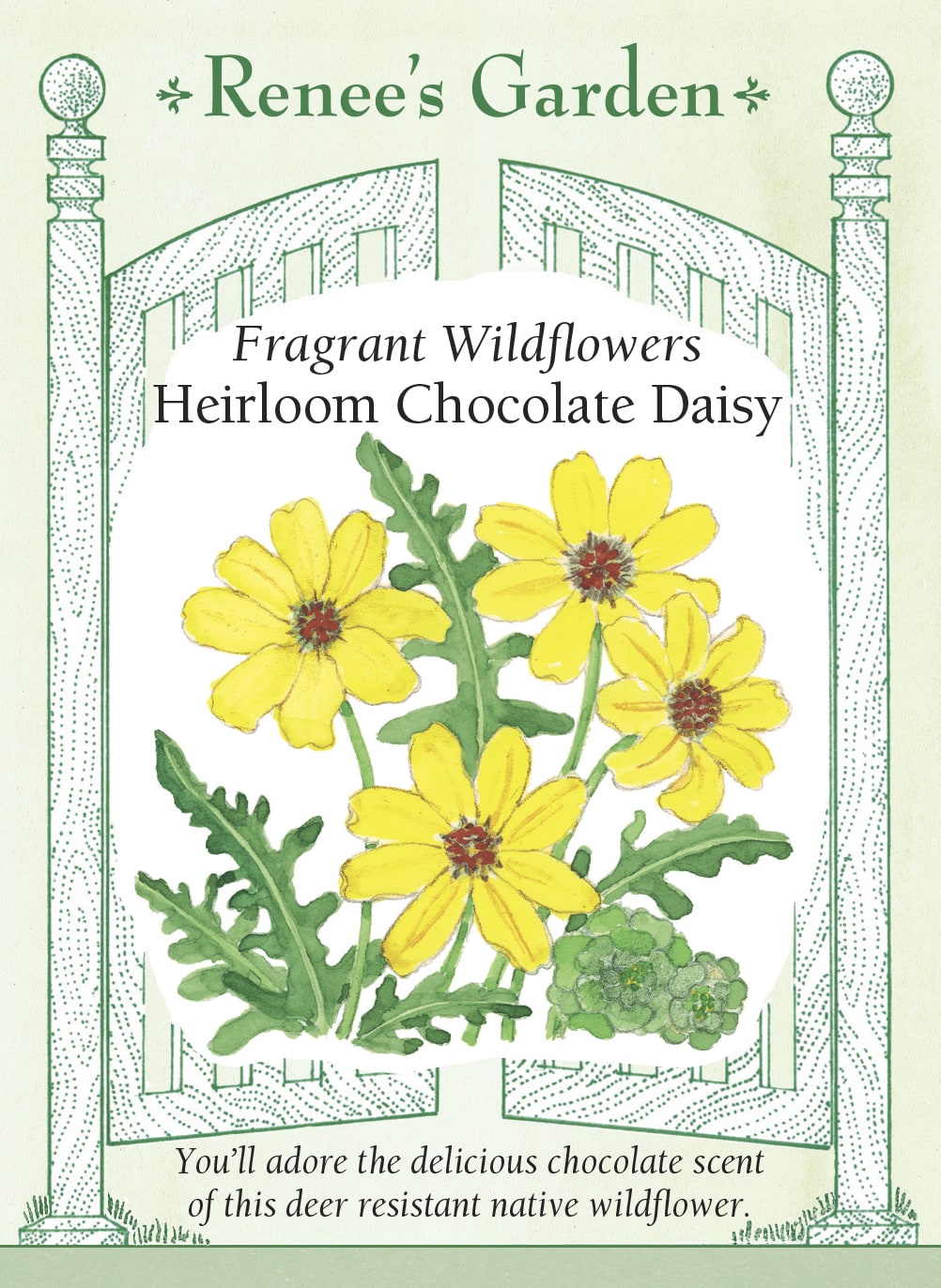 These cheerful native wildflowers have a tantalizing chocolate scent that wafts through the garden as they bloom in the sun. Chocolate daisies provide a continuous show of deliciously fragrant little butter yellow blossoms, each the size of a quarter. Plants are happily deer resistant, bloom hard all season and return every spring to perfume the garden. Chocolate daisies attract pollinators and butterflies all summer long. Who knew they love chocolate as much as we do!