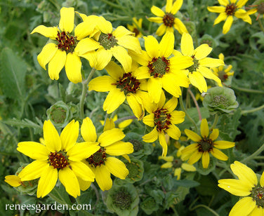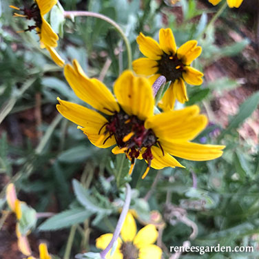 Chocolate daisies, native to the mesas and plains of the Southwest, thrive in average soil, but require good drainage to thrive; if soil is heavy clay, add organic material to improve drainage before sowing. Plant in large groups in full sun near where you walk for maximum fragrance impact. Deadhead spent flowers regularly to encourage reblooming. Blossoms are a important source of nectar for pollinators and beneficial insects. Plants die to the ground in winter, returning in spring and gaining in size over the seasons.