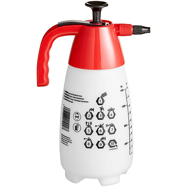 This tough, American-made, 48-ounce poly tank is the best handheld pump pressure sprayer for home gardeners. Just use the handy ounce markings on the tank to add concentrated liquid, organic fertilizer or non-toxic disease or pest control products, then dilute with water, pump the handle a few times to create pressure and go! The versatile nozzle has a thumb shut off, does not leak and adjusts quickly from a precisely aimed fine mist to a shower depending on your needs.