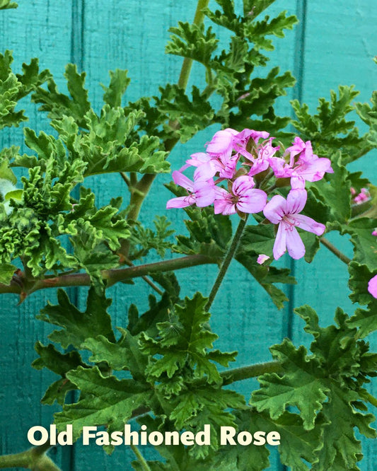 Vigorous 2 foot tall plants with pretty little rose-pink flowers. The deeply cut leaves have an intense clear rose fragrance, so pure that it is traditionally used in France for perfume making, confectionary and jellies. In the kitchen, steep the leaves in milk or sugar to perfume cake, custards, meringues, cookies, scones or muffins. Also wonderful in sachets.