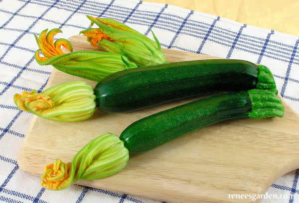 EXCLUSIVE - Twilight's dark green, cylindrical fruits are smooth-skinned, glossy and especially tender-fleshed with consistently delicious flavor, whether picked as babies with pretty blossoms still attached or at larger sizes. Harvest is quick and easy because the abundant fruits are born high up on bush style plants that don’t sprawl all over and the leaves have very few prickly spines. Twilight zucchini are widely adaptable, germinate and grow quickly, bear heavily and do not get woody or tough with age.