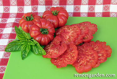 For best flavor, pick red-ripe and don’t store in the refrigerator. These tender, juicy, plump tomatoes have a naturally “pleated” shape. Slice thickly and show off their scalloped edges. Drizzle with good olive oil, a pinch of coarse salt, pepper and chopped fresh dill or basil. Enjoy!