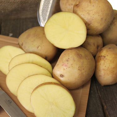 If you love yellow potatoes, you should certainly plant this fine selection bred from Yukon Gold and released in 2006. The round-oblong tubers mature about 10-12 days later than its famous parent with the same great flavor and delicious moist yellow flesh, but Yukon Gem offers more reliable and higher yields than Yukon Gold, as well as improved resistance to PVY, common scab, blight (early and late) and black spot.