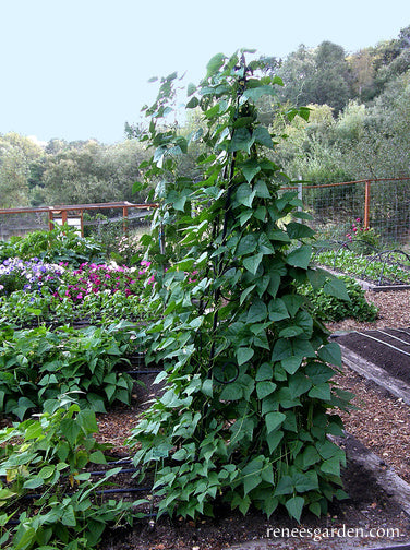 Beans are an easy and reliable crop, but don’t plant seeds too early; cold conditions prevent good germination. If first sowing comes up unevenly, replant right away; new seedlings will catch up quickly. Birds are attracted to young seedlings; watch carefully and protect with netting if necessary. Avoid harvesting beans in wet conditions.