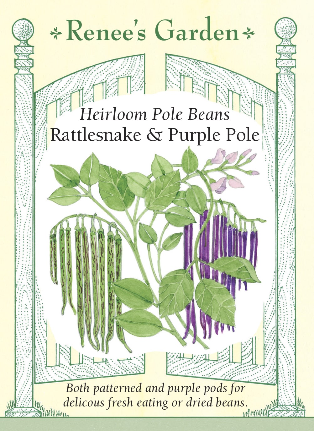 Both these heirloom pole varieties are heavy bearers, so harvest pods often. The more you pick, the more plants will produce. Harvest for snap beans when pods are well filled out, but bean seeds have not swelled in the pods. Cook just until tender to enjoy best flavor and texture. For dried beans, let some of the Rattlesnake bean pods fully mature and dry on the plants if you want to shell out the pretty mottled beans inside to enjoy in dried bean recipes and chili.