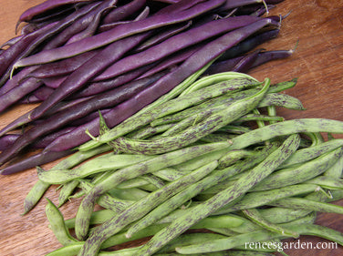 dry in the pods, then shell them for nutty-tasting and nutritious dried bean dishes. Distinctive purple pole beans are renowned for flavor and reliability, offering long, tender, crunchy pods whose rich color stands out from the vines so they are fun and easy to harvest. Both of these treasured heirloom beans have been passed down among generations of gardeners.