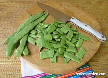 Tender, crispy beans are an easy, reliable crop to grow, but don’t plant too early, as weather under 50°F (10°C) prevents good germination. If first sowing comes up unevenly, replant right away; new seedlings catch up quickly. Birds are often attracted to young bean seedlings, so watch carefully and protect with netting or floating row covers if necessary. Avoid cultivating plants or picking pods when plants are wet.