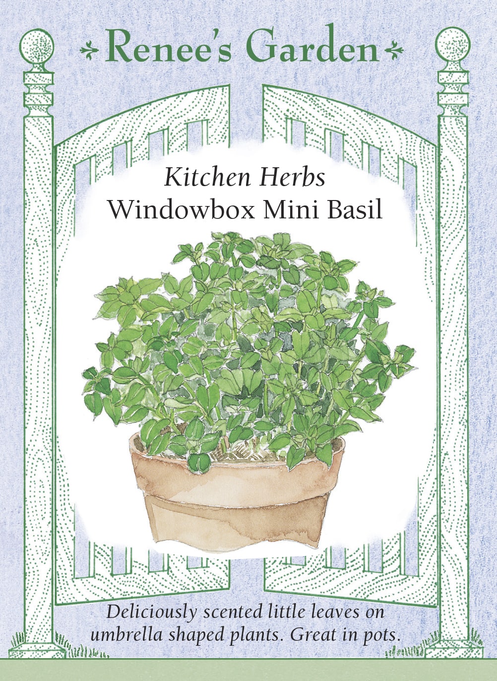 Neat, compact and richly aromatic, our miniature basil is imported from Italy where you’ll see it often in window boxes and containers or edging herb beds. The charming 8 to 10 inch plants grow into rounded, umbrella shapes with tiny bright green leaves just 1/2 inch long. Snip small clusters of the deliciously scented leaves to enjoy in everyday cooking. These sweetly fragrant little basil plants hold longer than their bigger cousins and are beautifully ornamental in the garden.