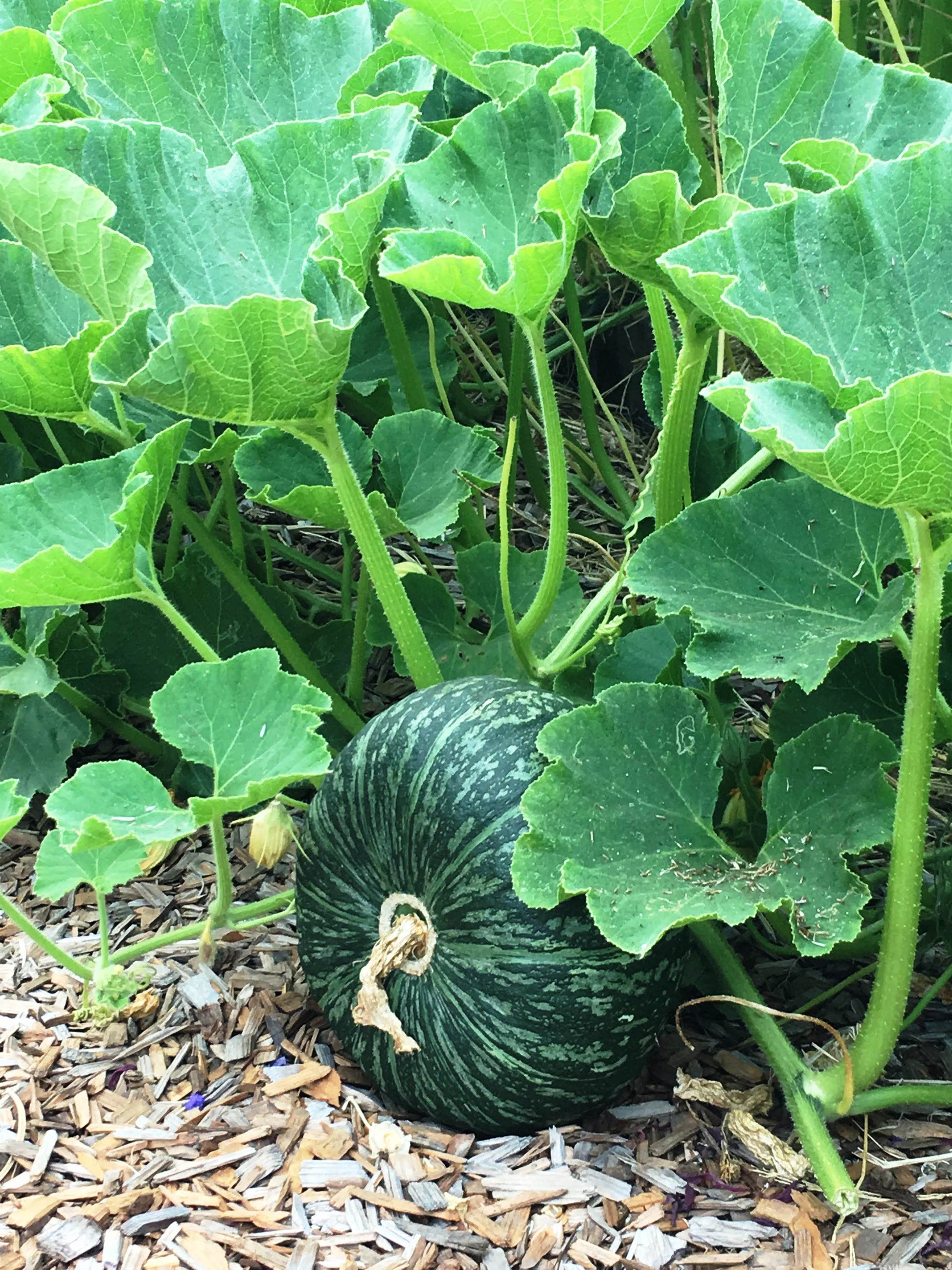 Winter squashes need to mature properly, so don’t harvest until vines have died back and squashes’ exterior rinds are fully dark green and tough enough to resist piercing with a fingernail. Then cut squashes from vines, leaving a good stem handle. Cure in the sun for about 10 days, before storing in a cool dry place where they will keep for months. To prepare, cut squash in half and bake until tender. Flesh is tender, nutty, sweet and totally delicious.