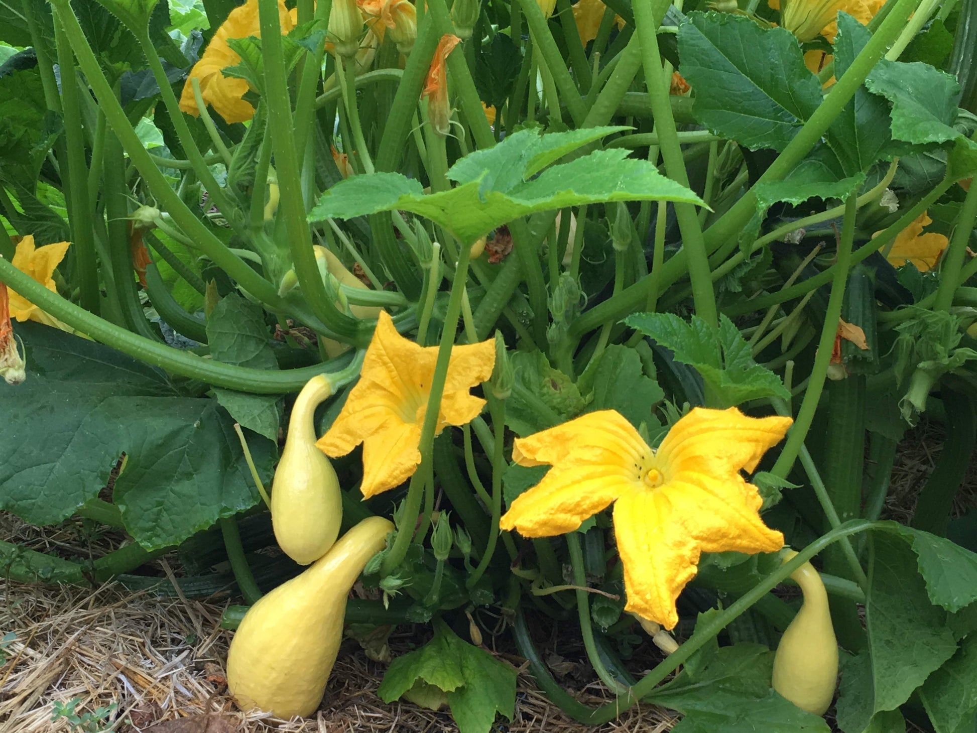 Summer squash needs full sun, rich fertile soil and warm temperatures. Plant only when spring weather is warm and settled and nights are above 50°F (10°C). Sow groups of 3 seeds 1 inch deep and 1 foot apart, in rows 3 feet apart. Thin to 1 strong seedling per group. Or, plant in slightly mounded hills, 2 feet in diameter and 2 feet apart, sowing 5 or 6 seeds in each hill. When seedlings are several inches long, it is critical to thin hill-planted seedlings to the 2 strongest plants so they have ample room to grow.
