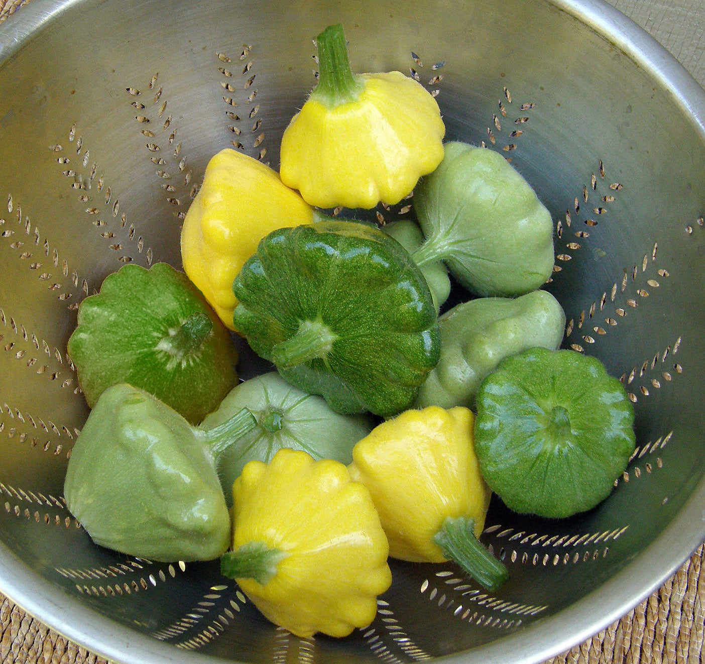 Harvest scallops when no more than 2 to 3 inches across for best flavor and tenderness. Frequent harvesting keeps plants producing tasty new squashes instead of maturing large, tough and pithy ones. Steam or stir fry the little pattypans and sprinkle with chopped fresh herbs like chives, basil, finely snipped dill or lemon basil. Cook and toss all 3 jewel-toned squashes with freshly ground pepper, butter and grated Parmesan.
